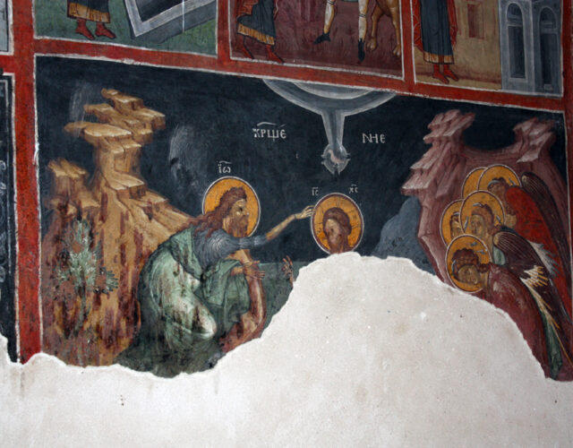 Северната, южната и западната стена на притвора са изографисани през XVII век. Сред фреските изпъкват образите на архангел Михаил, Свети Свети Константин и Елена, светците-воини Прокопий, Теодор Стратилат и Теодор Тирон, както и моменти от живота на Богородица и на Свети Георги.